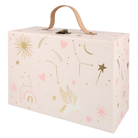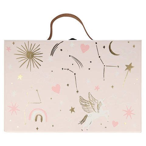 Дети, которые любят аксессуары для волос, будут без ума от этого удивительного чемодана с адвент-календарем. Он наполнен самыми красивыми и блестящими резиночками и заколками. Откройте коробку, чтобы увидеть пронумерованные ячейки, внутри которых находится ежедневная доза счастья для волос. Розовый чемодан с восхитительным дизайном и деталями из золотой фольги идеально подходит для хранения аксессуаров.