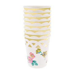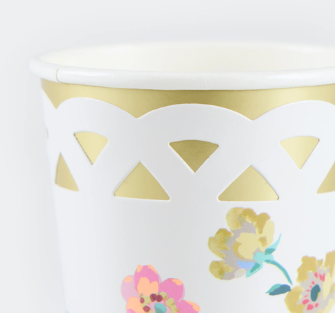 Эти стильные бумажные стаканчики, вдохновленные винтажным текстилем, украшены вырезанной бумажной вставкой с эффектом плетеной корзины, которая накладывается на блестящий стакан из фольги для шампанского, создавая вневременной и свежий образ. Изящный дизайн прекрасно сочетается с цветочной или однотонной посудой, что делает эти стаканчики универсальным выбором для любого торжества. В них можно подавать как горячие, так и холодные напитки, и каждый глоток будет изысканным. Идеально подходят для обедов в саду, послеобеденных чаепитий, девичников или торжественных ужинов.