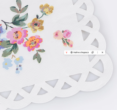 Эти элегантные большие бумажные салфетки, вдохновленные винтажным текстилем, украшены вырезанной каймой с эффектом плетеной корзины и изящным фестончатым краем. По всей поверхности салфетки распускаются нежные цветы, придавая ей классический и в то же время свежий вид. Эти салфетки идеально подойдут для обедов в саду, послеобеденных чаепитий, торжественных ужинов или девичников. Они привнесут непринужденный стиль и очарование в атмосферу взрослой вечеринки.