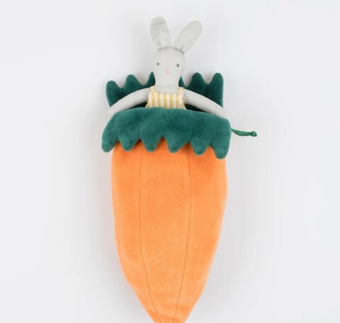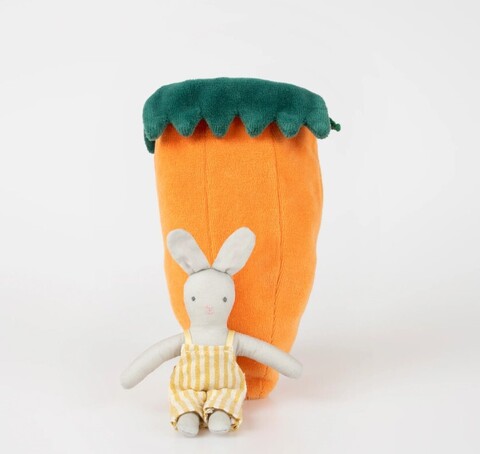 Этот специальный набор, состоящий из мини-кролика из ткани с бархатным мешочком-морковкой, совершенно очаровательный. Это великолепный подарок для часов творческого веселья, игры на ходу или для того, чтобы брать его с собой на ночевку.