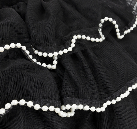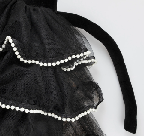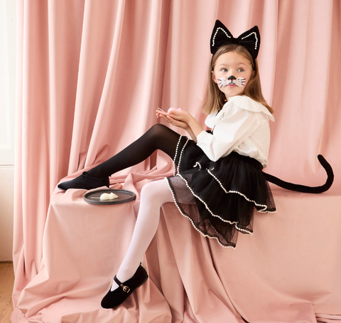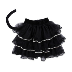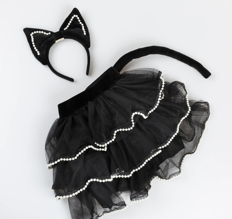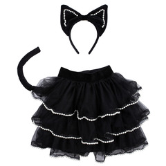 Мяу! Шикарный кот на охоте! Благодаря вниманию наших талантливых дизайнеров к деталям этот костюм кошки на Хэллоуин выглядит невероятно стильно! Чёрная юбка из тюля украшена искусственным жемчугом и отстегивающимся хвостом, поэтому вы сможете носить его не только на костюмированных вечеринках или в качестве переодевания. Чёрный бархатный ободок с эффектным бантом и декоративными вставками из искусственного жемчуга не менее умиляет и служит кошачьими ушками, завершая нарядный кошачий образ.