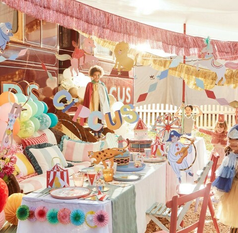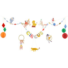 Эта эффектная гирлянда станет веселым и сказочным украшением вашей цирковой вечеринки. Классические цирковые символы сочетаются с модными полосками и арлекинами, трехмерными сотовыми формами и золотой фольгой, чтобы сделать это украшение незабываемым!