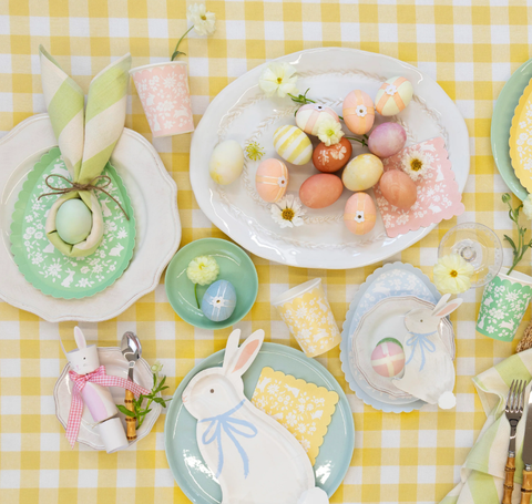 Накройте стол для весенней радости. Эти бумажные тарелки в форме яиц — свежий и очаровательный способ украсить ваш праздничный стол. Тарелки с изящным цветочным узором, милыми иллюстрациями с кроликами и волнистым краем выглядят игриво и при этом имеют гладкую поверхность. Каждый набор представлен в четырех красивых весенних оттенках, которые идеально сочетаются с остальной пасхальной посудой. Тарелки с однотонной задней частью в тон — особая деталь, которая отличает их от обычной посуды, — выглядят элегантно со всех сторон.