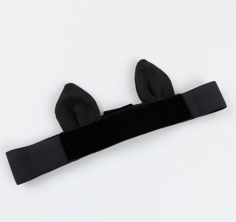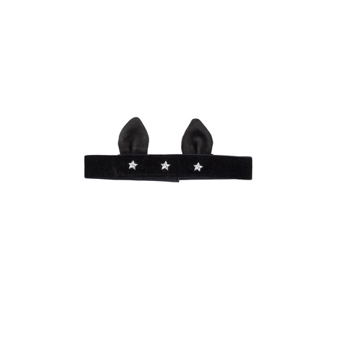 - Мягкая черная бархатная повязка на голову украшена очаровательными деталями в виде ушей, вышитыми серебряными звездами и застежкой-липучкой.