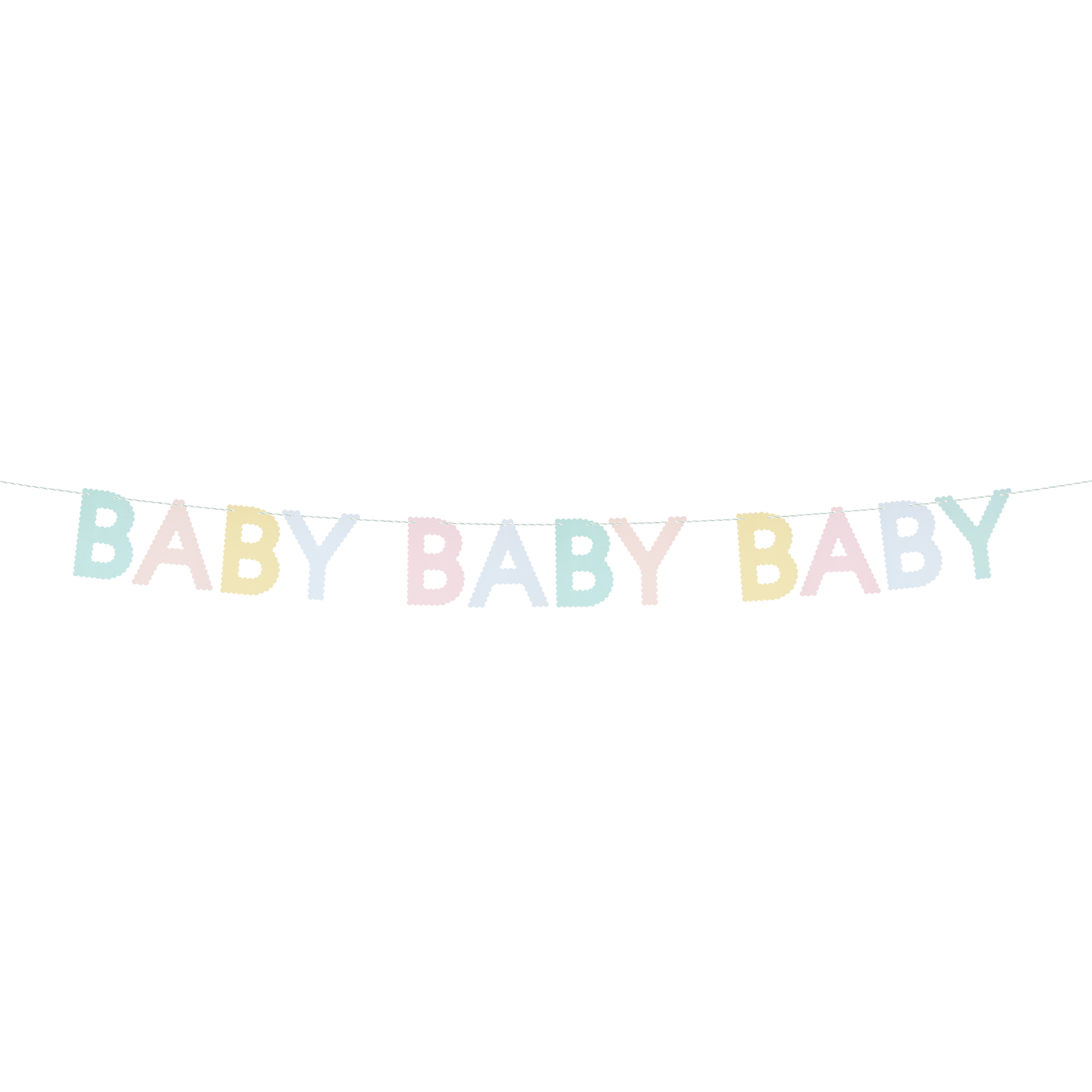 Добавьте пастельных ноток к вечеринке в честь рождения ребёнка с помощью этой эффектной гирлянды с фестончатыми краями. Повесьте её на праздничный стол, стену, дверь, веранду или каминную полку для потрясающего эффекта. После использования упакуйте в подарочный конверт, чтобы она была готова к празднованию следующего счастливого рождения малыша. Также идеально подходит для стильного украшения детской комнаты.