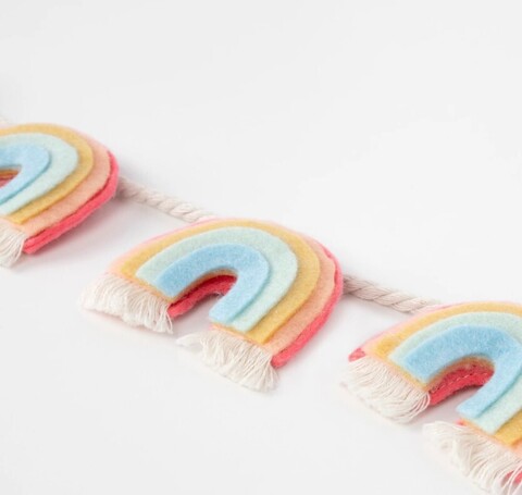 Если вы ищете украшения для вечеринки или комнаты, которые добавят яркий и красивый штрих, то вам понравится эта радужная гирлянда. Она сделана из мягкого прочного фетра, поэтому ее можно использовать снова и снова.
