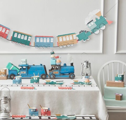 Чу-чух, эта гирлянда из поездов - великолепное украшение для вечеринки или спальни. Изысканное внимание к деталям и яркие цвета создают восхитительный эффект.