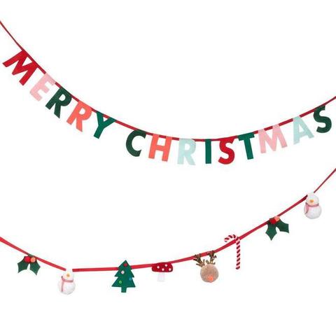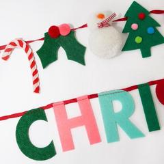 Эта праздничная гирлянда из фетра, в которой смешано веселое послание и колоритные персонажи, смотрится просто фантастически. Она красиво оформлена с множеством восхитительных деталей, включая помпоны и блестящую золотую ткань. Упакована в стильной сумке из органзы на шнурке, так что вы можете хранить ее аккуратно упакованной после праздников.