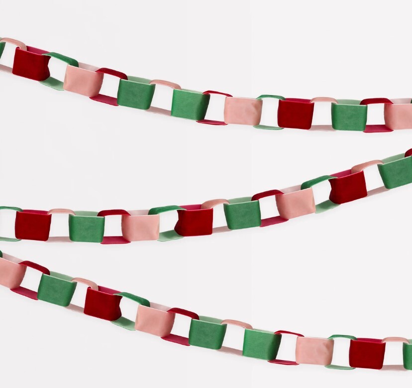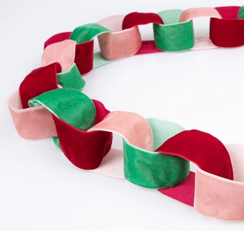 Зачем вам тонкие бумажные гирлянды, если можно украсить дом этой потрясающей гирляндой с бархатными лентами? Бархат — чудесная ткань, которая придаст вашему Рождеству поистине роскошный вид! Более того, мы объединили традиционные праздничные оттенки красного и зелёного с розовым, чтобы создать современный яркий акцент. Повесьте эту гирлянду в дверном проёме, на стене, каминной полке или на праздничном столе. Это поистине универсальное украшение, которое можно использовать из года в год.