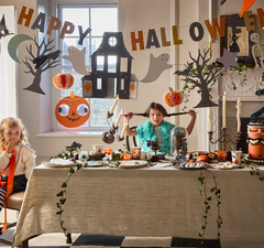Хэллоуин — это время ярких и смелых гирлянд, поэтому ваши украшения тоже должны быть такими! Наши талантливые дизайнеры создали жуткую и привлекательную гирлянду, полную драматизма — представьте себе дом с привидениями с работающими дверями, культовыми персонажами Хэллоуина, флажками из папиросной бумаги, чёрным пером и объёмными сотами. Два отдельных гирлянды можно наложить друг на друга для создания эффекта или разложить, чтобы удвоить веселье. Повесьте гирлянду на каминную полку, на веранду или на стену для создания выразительного эффекта.