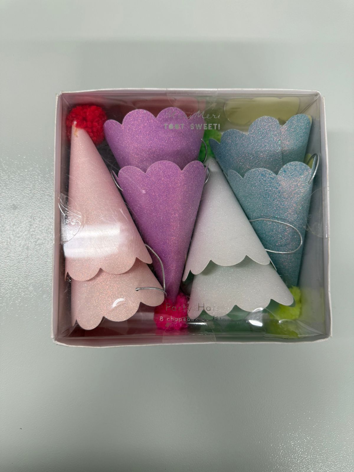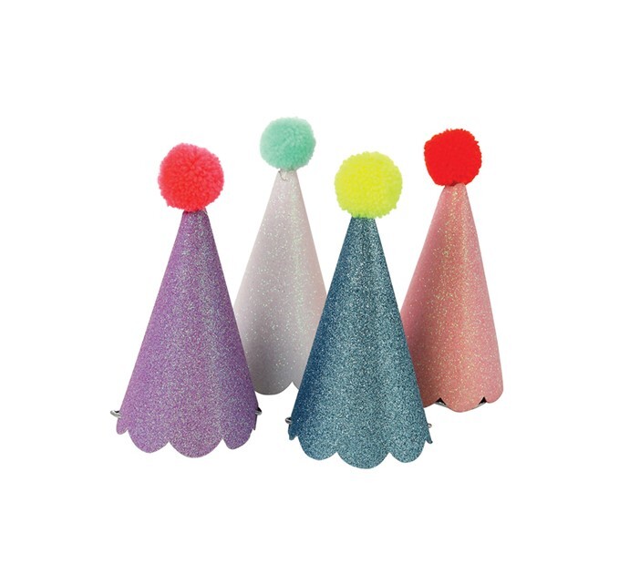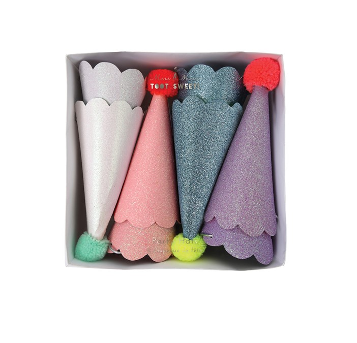 Добавьте веселья празднику с помощью этих блестящих праздничных колпачков с помпонами! Выполненные в красивых смелых цветах, покрытых мерцающим блеском и увенчанных веселыми неоновыми помпонами, ваши гости будут на седьмом небе от счастья!