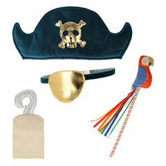 Этот пиратский костюм идеально подходит для пиратской вечеринки или творческой игры в любой день. В комплект входит потрясающая бархатная шляпа, блестящая повязка на глаз и крючок, все с блестящими деталями для создания потрясающего эффекта. Добавьте к этому палочку, увенчанную ярким попугаем, и вы будете выглядеть настоящим отважным персонажем!