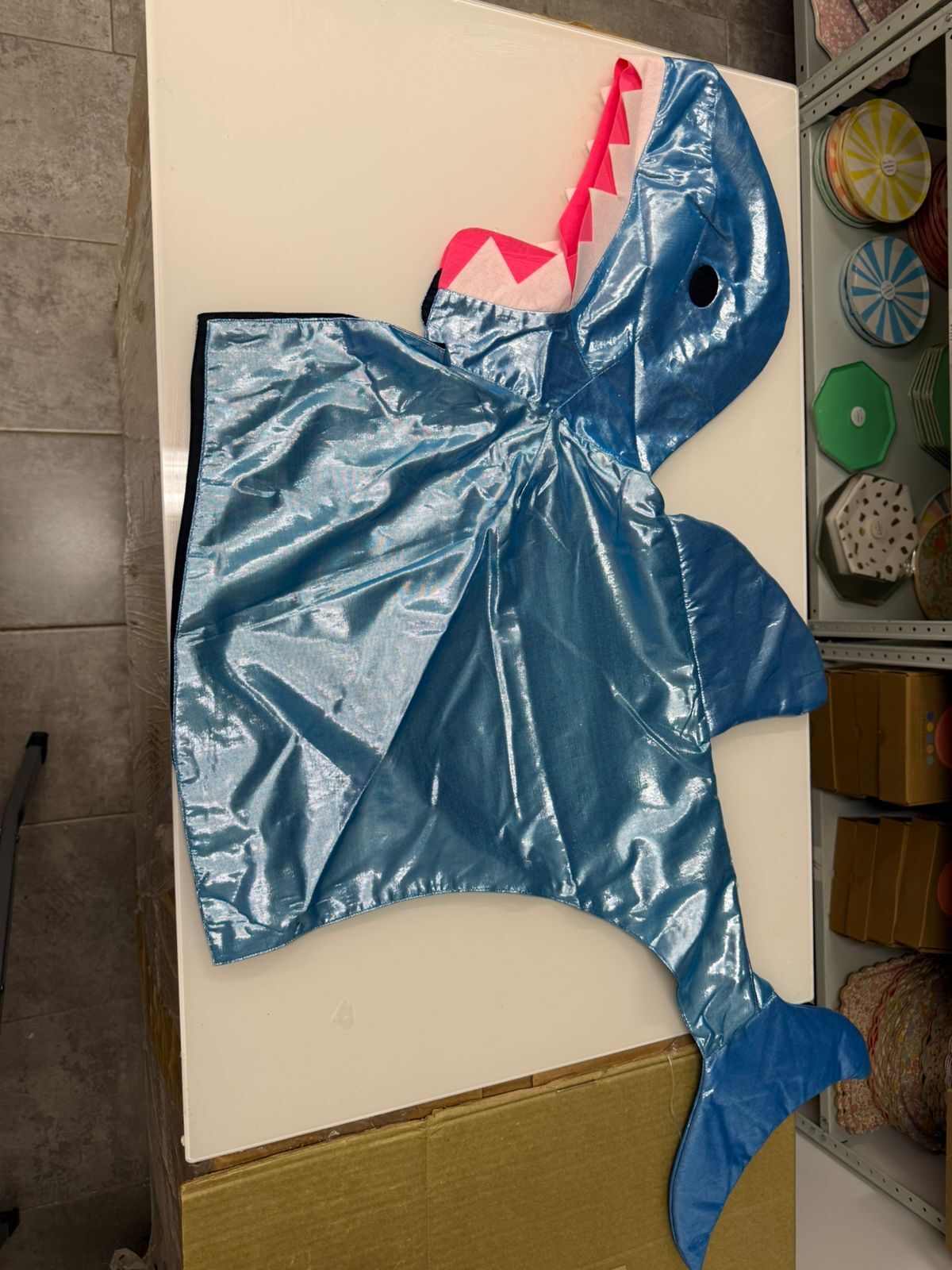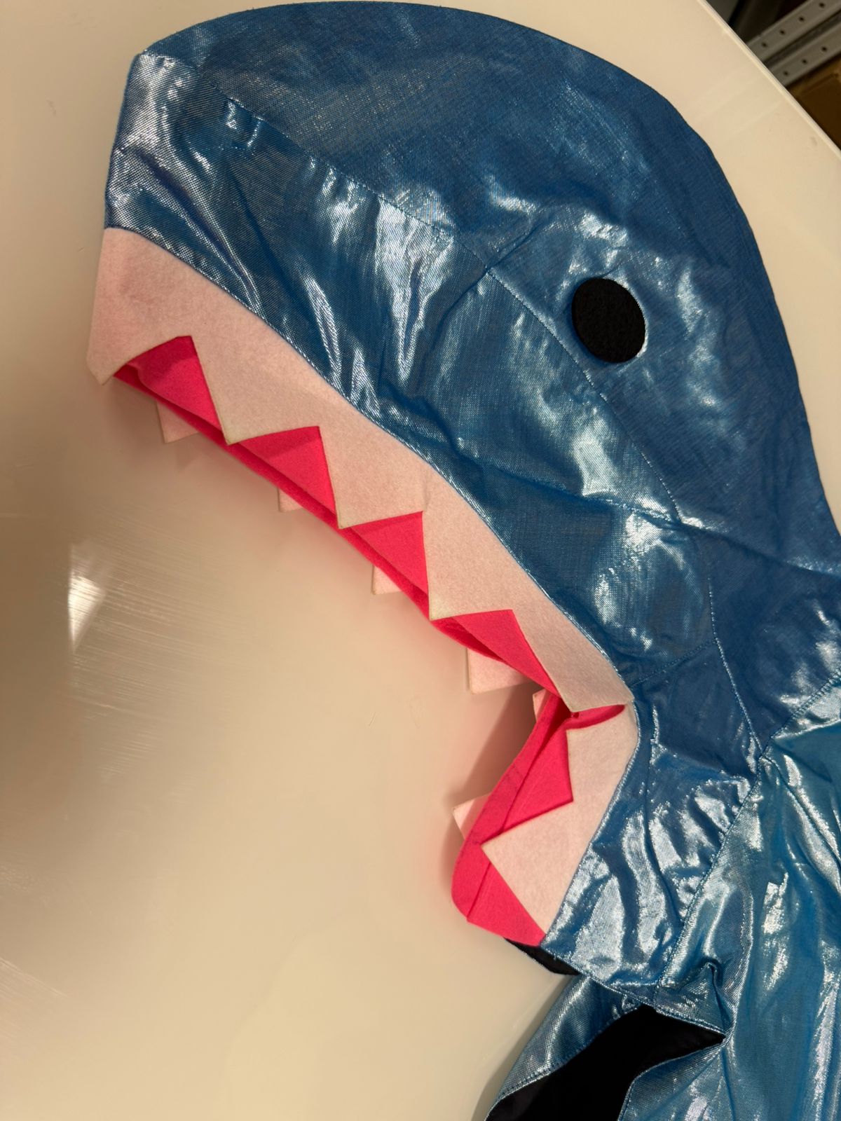 Этот костюм в виде акулы подойдет для тех детей, кто любит море и океан, у него есть мерцающая подкладка, металлическая накидка, мягкий плавник и хвост, а также сказочный капюшон с зубами из войлока.