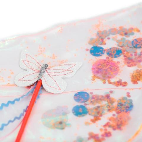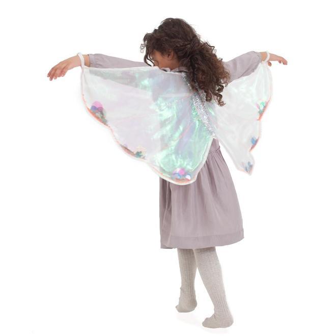 Малышам понравится превратиться в волшебную бабочку с этими великолепными крылышками, расшитыми пайетками. Также есть блестящая палочка-бабочка с кисточкой для наложения особых заклинаний. Идеально подходит для часов творческого веселья.