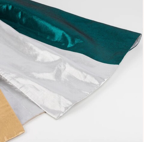 - Она изготовлена из металлизированной ламе с полосами красного, розового, темно-синего, голубого, зеленого, золотого и серебряного цветов с подкладкой из полихлопка.
