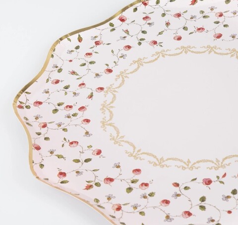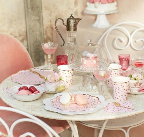 Мы снова сотрудничали с парижскими кондитерами и профессионалами в изготовлении макарон для коллекции под названием «Мария-Антуанетта». Сочетание сладких романтических оттенков нежно-розового и красного, а также красивые узоры в виде бутонов роз делают эти бумажные тарелки такими особенными для Дня святого Валентина. Они также идеально подходят для послеобеденного чаепития, помолвки или девичника.