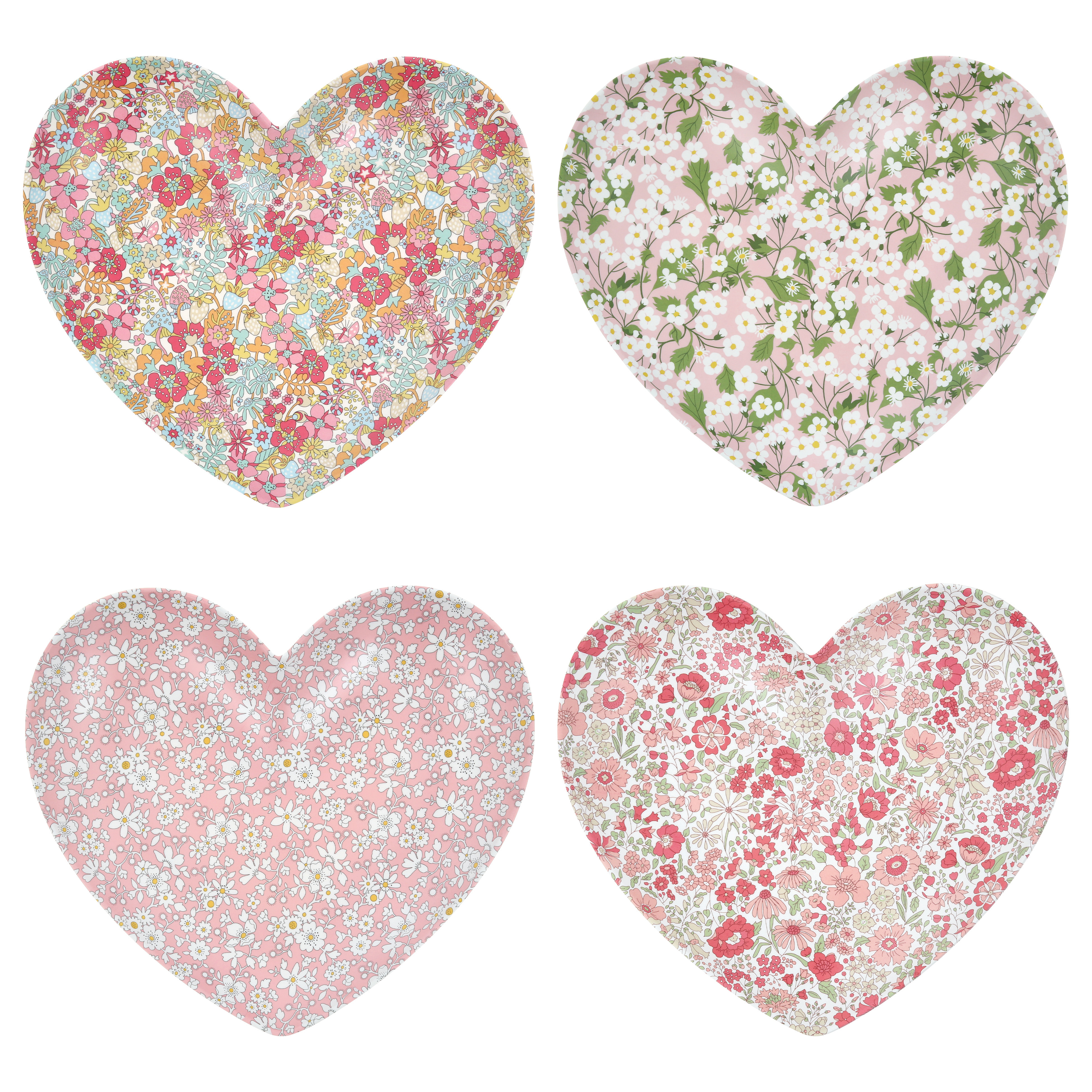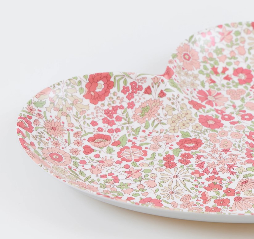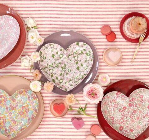 Один набор тарелок — сотни вечеринок! Мы объединились с Liberty, чтобы создать этот милый набор многоразовых тарелок в форме сердечек, каждая из которых украшена уникальным цветочным узором Liberty. Нежные розовые и гармонично сочетающиеся тона узоров добавят игривости и элегантности вашим празднованиям Дня святого Валентина. Изготовленные из прочного меламина, они идеально подходят для вечеринок, пикников или просто для того, чтобы украсить повседневные обеды. Это продуманный выбор для всех возрастов, будь то накрытие стола с любовью или подарок тому, кто оценит трогательный цветочный момент.