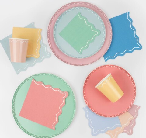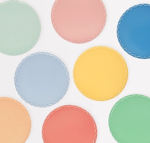 Не можете определиться с цветовой темой для вечеринки? Meri Meri спешит на помощь с этим набором бумажных тарелок в 8 ярких цветах — идеально, чтобы сделать ваш праздничный стол потрясающим. Волнистая линия границы также придает дополнительный особый эффект. Они идеально подходят для всех возрастов.