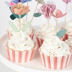 Превратите свои кексы в замечательные цветочные произведения искусства с помощью этого специального набора для кексов. Он включает в себя формочки для кексов в розовую и белую полоску и топперы с 11 замысловатыми красивыми цветами.