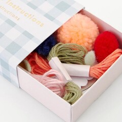 - Также в комплект входят 3 помпона для трехмерного эффекта, персиковый для хвоста и коралловый и темно-синий в качестве цветочных центров.