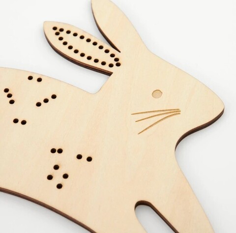 - Зайчик изготовлен из фанеры, с отверстиями для вышивки.