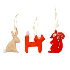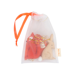 Эти очаровательные украшения в виде лесных животных будут волшебно смотреться на елке, придавая вашему дому тепло и уют. Черты зверей вышиты золотой нитью. Упакованы в милый мешочек, в котором их можно хранить весь год.