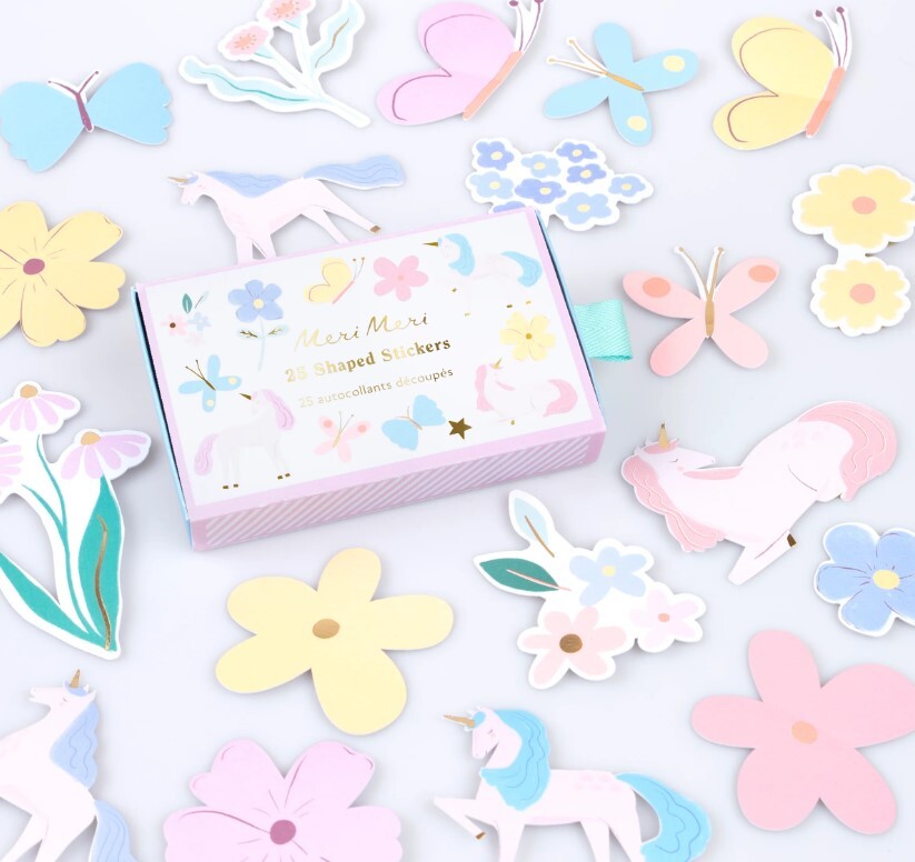 Волшебные и прекрасные, эти наклейки с единорогами, цветами и бабочками идеально подходят для блокнотов, открыток, постеров и подарочных бирок. Их также можно положить в праздничные пакеты или использовать для творчества на вечеринках в стиле единорогов или принцесс. Упакованные в спичечный коробок, они станут прекрасным подарком для детей, любящих творческие игры.