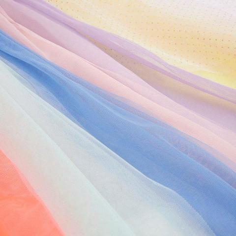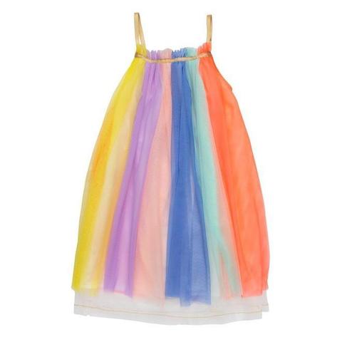 Этот великолепный наряд в стиле радуги идеально подходит для того, чтобы маленькая девочка превратилась в прекрасную фею. Платье выполнено из слоев яркого тюля для создания эффектного образа и имеет подкладку из хлопка. К нему прикреплены воздушные крылья из многослойного тюля с блестящей золотой каймой. Поставляется с волшебной палочкой со счастливым солнечным лицом, чтобы творить магические заклинания.