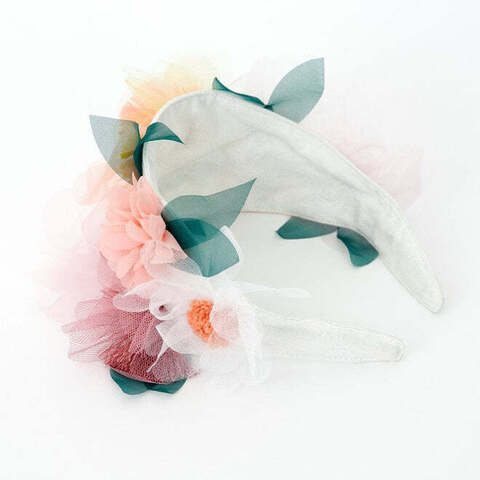 Дети, которые любят красочные головные уборы, будут в восторге от этого сенсационного ободка. Он искусно изготовлен цветов из органзы и тюля, листьев из органзы, а также восхитительных кисточек и помпонов. Идеально подходит для вечеринки или любого особого мероприятия, где вы хотите немного цветочной красоты.