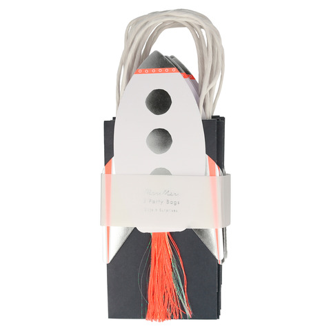 Ваши гости будут в восторге от дома с этими сенсационными сумками для ракетной вечеринки. Они красиво украшены блестящей серебряной фольгой и мерцающей кисточкой.