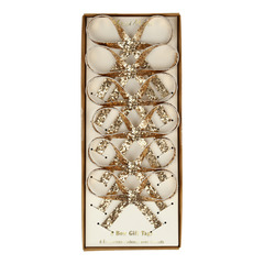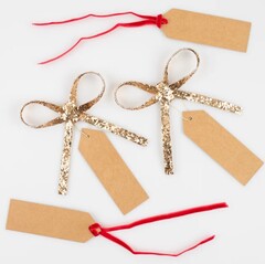 Эти модные украшения с золотыми блестками мгновенно добавят элегантности вашим подаркам. В комплект входят красная бархатная лента и золотая металлизированная нить, так что вы сами решите, что использовать. После того, как крафт-бирки будут удалены, их можно будет повторно использовать в качестве украшений — идеально подходит для рождественской елки или каминной полки.