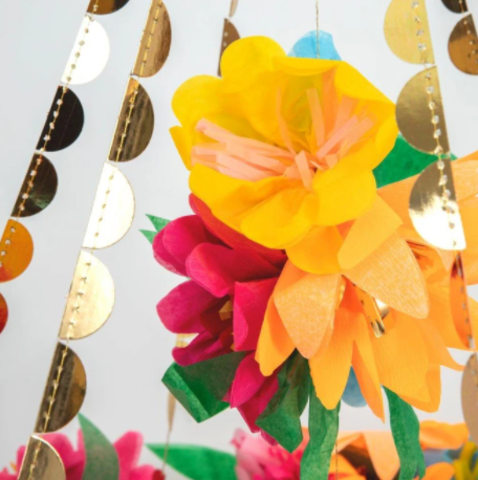Ищете как преобразить вашу комнату? Тогда эта подвеска из бумаги и ткани в виде ярких цветов то, что вам нужно! Подвеска выполнена из папиросной бумаги, листья и цветы сшиты золотыми бумажными формами в виде морского гребешка.