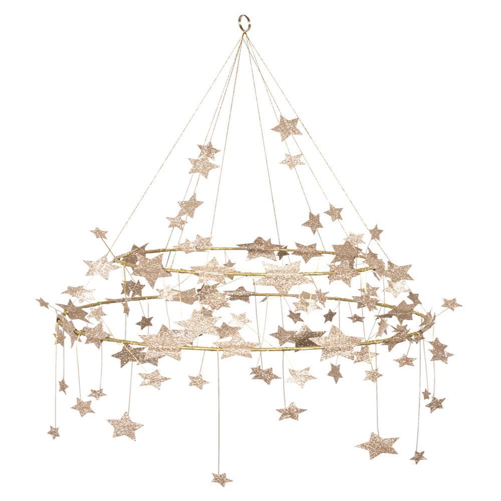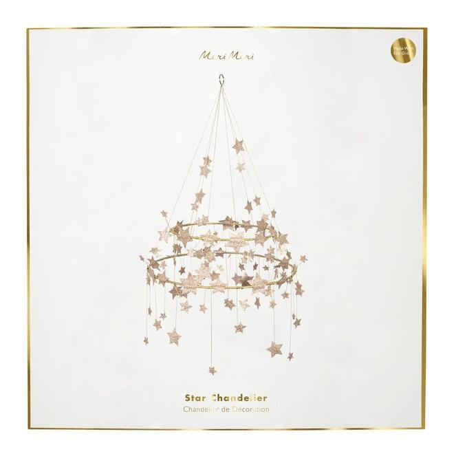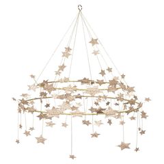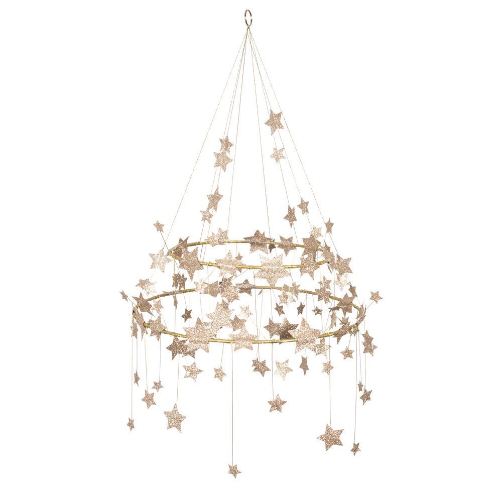 Эта великолепная люстра - потрясающий способ добавить нотку стиля в любую комнату. Она красиво украшена множеством блестящих золотых звезд с золотой проволокой и нитью. Идеально подходит для праздников или в любое время года, когда вы хотите украшение, которое станет главной достопримечательностью!