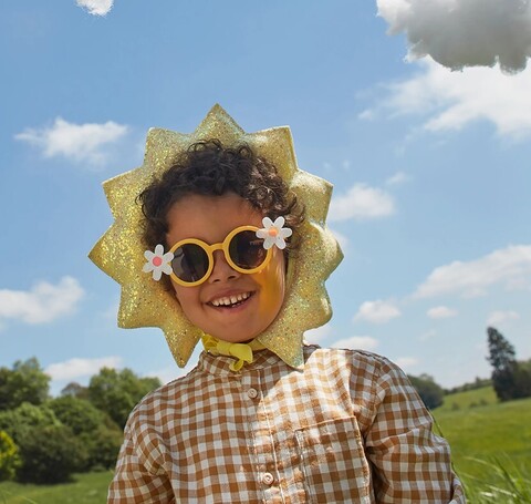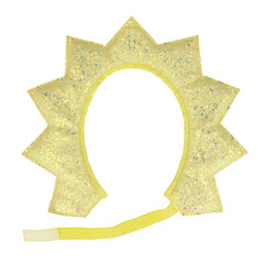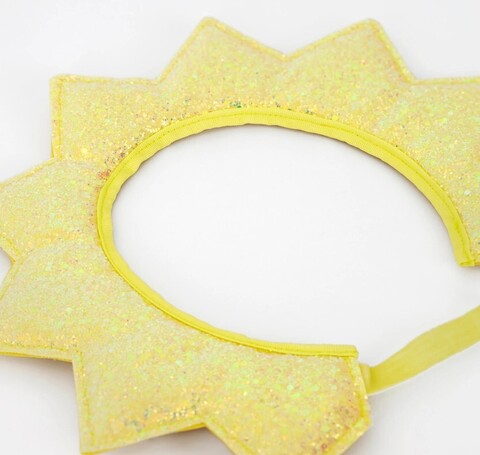 Пусть ваши дети сияют ярким светом в этом красивом солнечном головном уборе. Он изготовлен из желтой блестящей ткани и фетра и украшен потрясающими деталями из лент. Идеальный костюм для вечеринки или любого веселого праздника, а также для творческой игры.