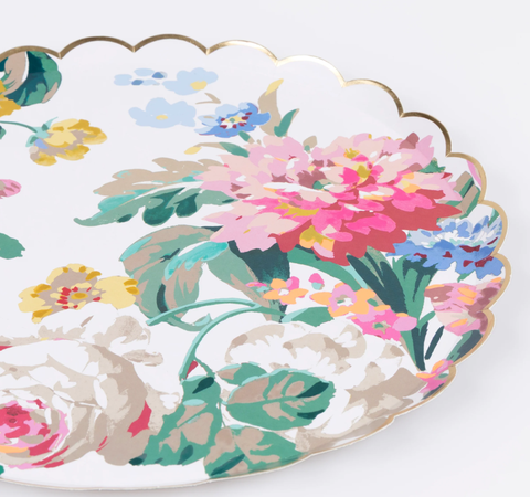 Эти бумажные обеденные тарелки в стиле рококо с яркими цветочными узорами, вдохновленными винтажными французскими обоями, переосмыслены в ярких цветах с игривыми неоновыми акцентами. Стильный фестончатый край с блестящими деталями из золотой фольги придает тарелкам изысканный вид, напоминая старинную посуду в современной интерпретации. Они идеально подойдут для вечеринок в саду, весенних званых ужинов, чаепитий, девичников или юбилеев и придадут торжеству стильный оттенок.