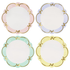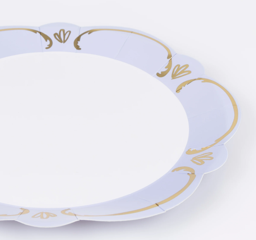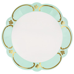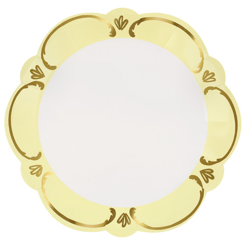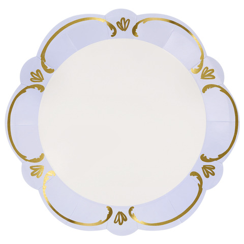 Эти изысканные бумажные обеденные тарелки, вдохновленные витиеватой элегантностью стиля рококо, выполнены в гармоничной пастельной палитре: голубом, розовом, желтом и зеленом оттенках. Благодаря волнистому краю и деталям с золотой фольгой они напоминают старинную керамику в современной интерпретации. Оборотная сторона выполнена в том же пастельном оттенке, что придает тарелкам гармоничный вид со всех сторон. Они идеально подойдут для обедов на свежем воздухе, чаепитий, весенних званых ужинов или девичников. С ними любое событие станет изысканным и праздничным.