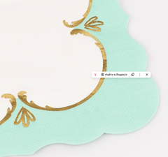 Эти большие салфетки, вдохновленные витиеватой элегантностью стиля рококо, выполнены в гармоничном сочетании пастельных оттенков синего, розового, желтого и зеленого. Они изготовлены из мягкой бумаги, имеют стильный волнистый край и украшены блестящими деталями из золотой фольги. Эти салфетки идеально подойдут для весенних посиделок, обедов в саду, чаепитий или девичников. Они придадут изысканный вид любому праздничному столу.