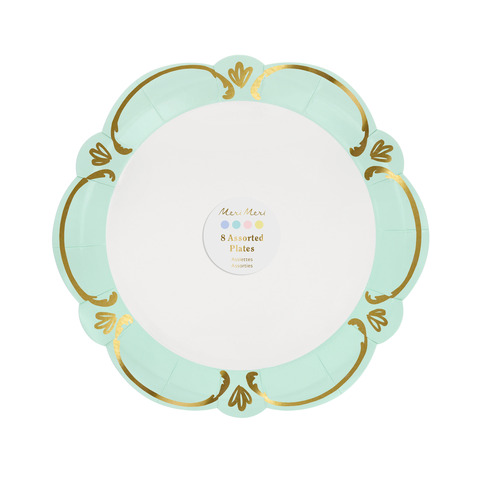 Эти изысканные бумажные салфетки, вдохновленные витиеватой элегантностью стиля рококо, выполнены в гармоничной пастельной палитре: голубом, розовом, желтом и зеленом оттенках. Благодаря волнистым краям и деталям с золотой фольгой они напоминают старинную керамику в современной интерпретации. Обратная сторона выполнена в том же пастельном оттенке, что придает салфеткам гармоничный вид со всех сторон. Они идеально подойдут для обедов на свежем воздухе, чаепитий, весенних вечеринок или девичников. С ними любое событие станет изысканным и праздничным.