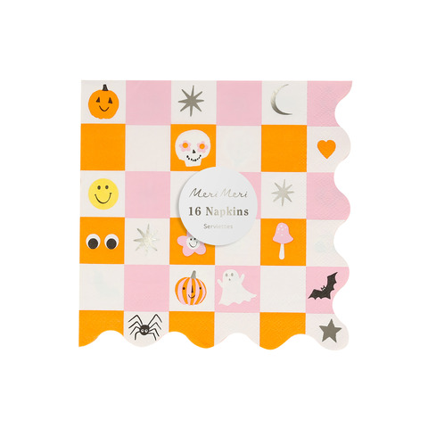 Мы любим Хэллоуин, одно из самых счастливых и веселых времен года, и мы уверены, что вы тоже. Поэтому мы наполнили эти салфетки фантастическими символами Хэллоуина, чтобы вы и ваши гости улыбались еще больше! Цветовые сочетания розового, оранжевого, черного, серебристого и белого в сочетании с цветами и знаками Хэллоуина сделают вашу вечеринку потрясающей.