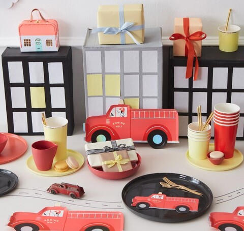 Эти ярко-красные салфетки в форме пожарных машин изготовлены из трехслойной бумаги, поэтому они практичны и красивы на вид. Яркие цвета и детали из голографической фольги будут сенсационно смотреться на праздничном столе.