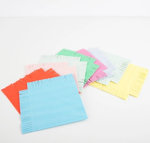 Украсьте любой праздничный стол этими красивыми яркими салфетками. Они имеют очаровательные бахромчатые края для стильного эффекта.