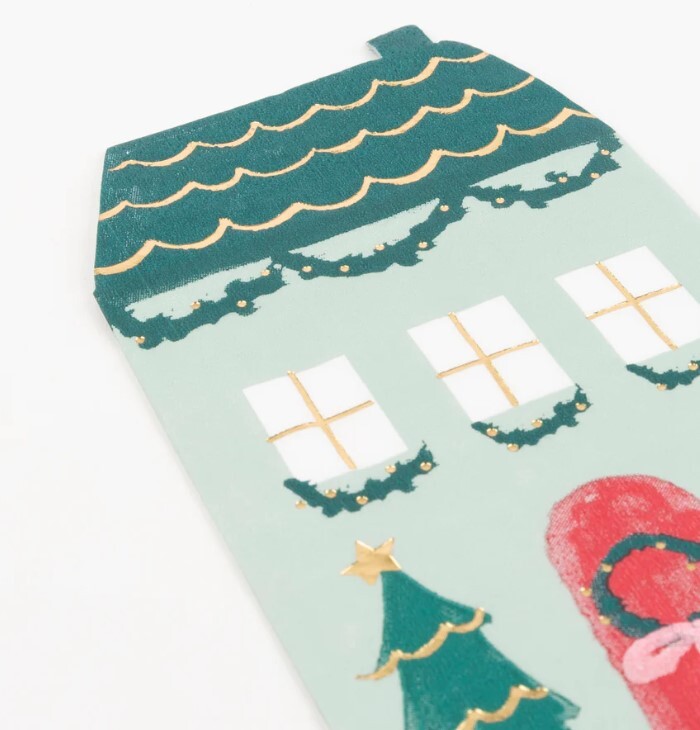 Если вам нужна традиционная тема для вашего праздничного торжества, вам понравятся эти специальные салфетки. Они прекрасно иллюстрированы и созданы так, чтобы выглядеть как дом, украшенный стильными рождественскими украшениями.