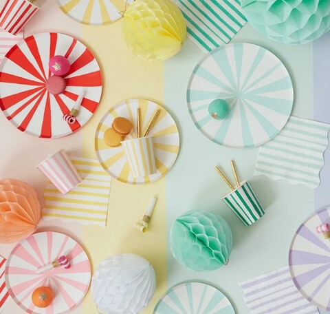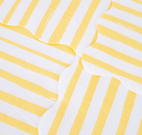 Добавьте ярких красок на свой праздничный стол с помощью этих салфеток в солнечно-желтую и белую полоску. Зубчатая кайма также создает стильный эффект.
