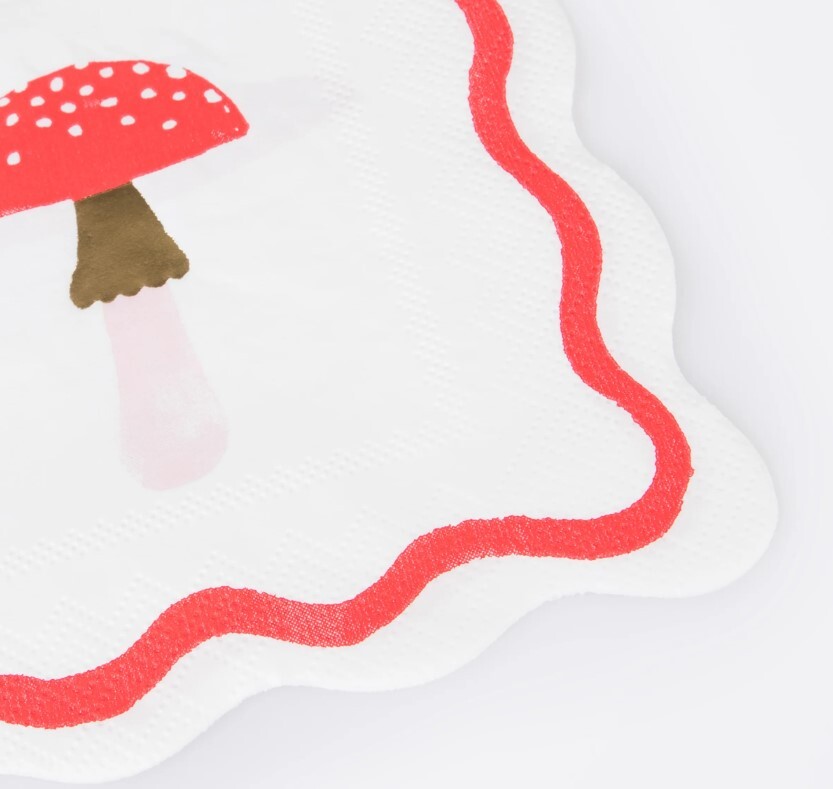 Грибы все еще в моде и выглядят волшебно в качестве дизайна рождественских салфеток. Их красный и белый цвета идеально соответствуют традиционной праздничной цветовой теме, с современными вкраплениями стильной золотой фольги и розового для дополнительного эффекта. Эти небольшие салфетки с элегантным волнистым краем идеально подойдут для любого рождественского обеда или коктейльной вечеринки.