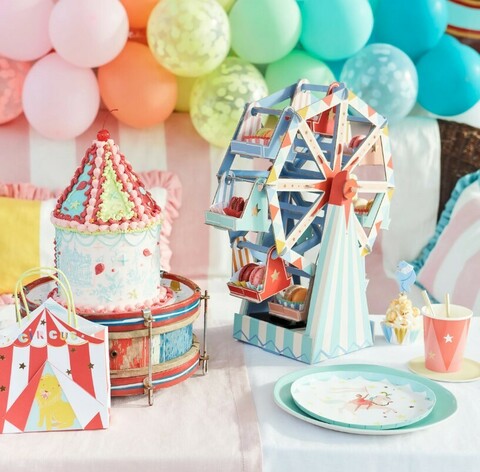 Наслаждайтесь весельем цирковой вечеринки! Сочетание ярких цветов и блестящих звезд придает современный вид классической теме.
