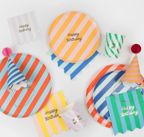 Полоски супер — они подходят к любой теме и всегда в тренде! Они сочетаются с поздравлением с днем рождения и будут эффектно смотреться на праздничном столе.