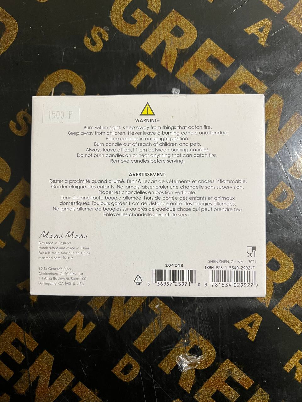 Описание БРАКа: Сторонний ценник на упаковке, небольшие потертости.