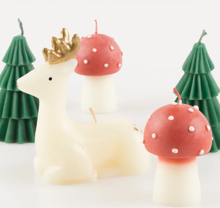 Создайте чудесную зимнюю лесную сцену с нашим прекрасным набором свечей. Он включает свечу в виде оленя, свечи в виде рождественской елки и свечи в виде грибов с яркими красными фитилями. Расположите их все вместе для выразительного эффекта на праздничном столе или каминной полке или в разных местах вашего дома в качестве классических рождественских украшений. И, если вы их не зажигаете, вы можете использовать их из года в год для мгновенного праздничного великолепия. Потрясающий подарок для того, кто любит свечи, и они также станут отличным подарком для хозяина.