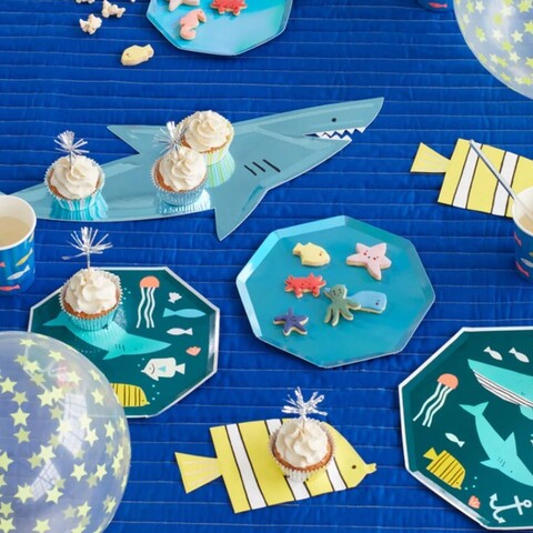 Порадуйте своих гостей, превратив праздничный стол в море мерцающих акул с помощью этих сенсационных тарелок!