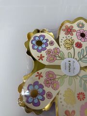 Эти тарелки с цветочными бабочками действительно красивы! Идеально подходят для волшебной вечеринки с принцессами, чаепития или юбилея. Элегантно иллюстрированы и изготовлены, с множеством великолепных деталей из золотой фольги и коралловой антенной из рафии.